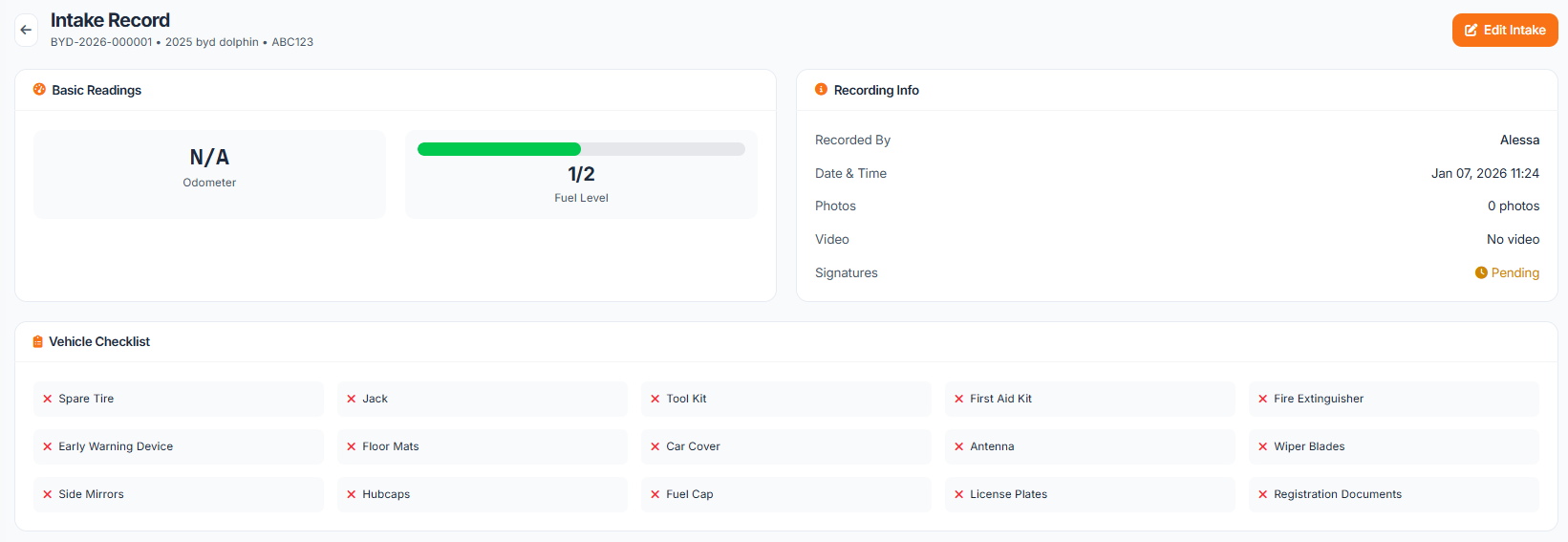 Vehicle Inspection & Intake