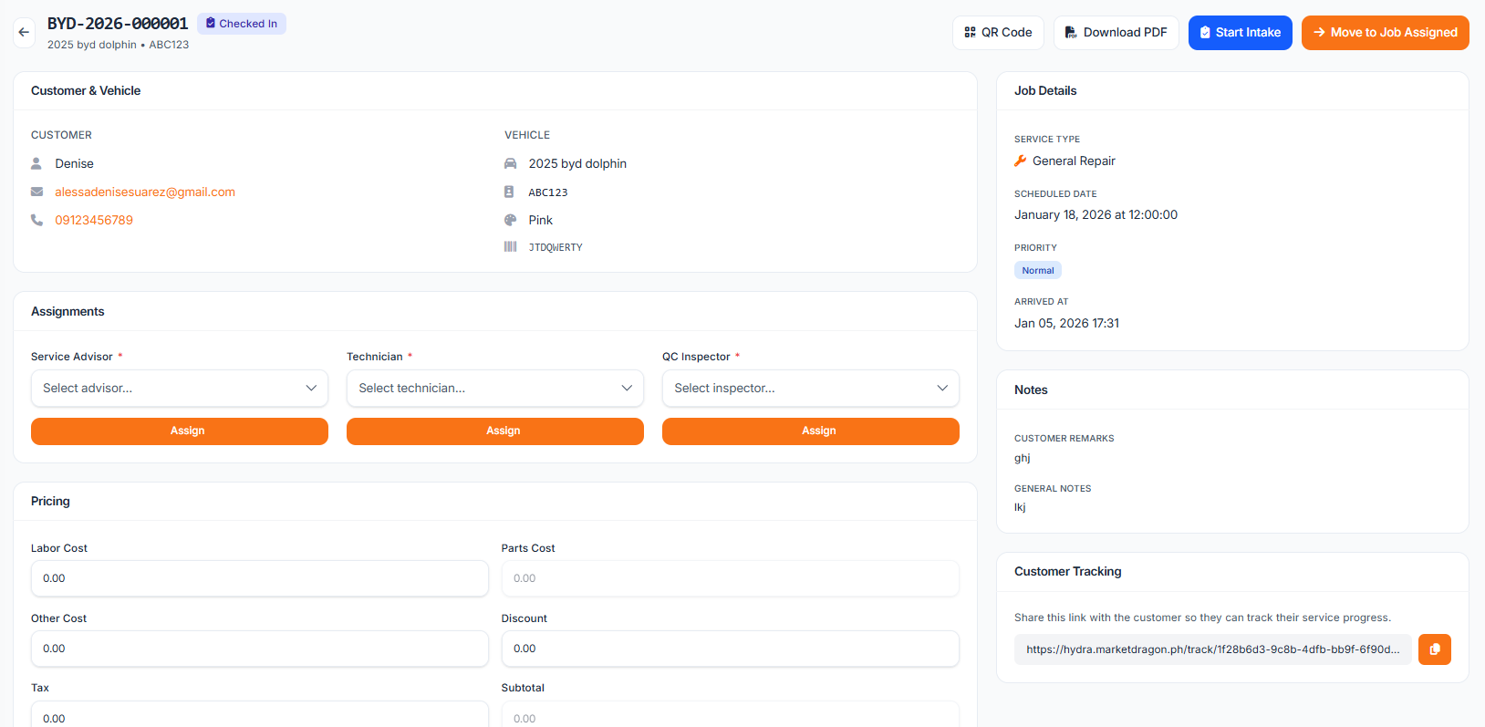 The vehicle intake process documents the condition of a vehicle before service begins. This protects both your business and the customer.