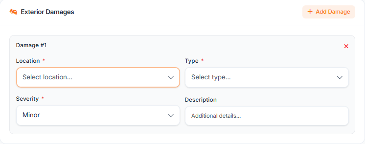 - Select damage type (scratch, dent, crack, etc.)